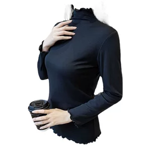 Модальная Облегающая рубашка больших размеров с толстой сестрой 200 кг с деревянными ушками полу-Высокий воротник футболка с длинным рукавом Женская куртка