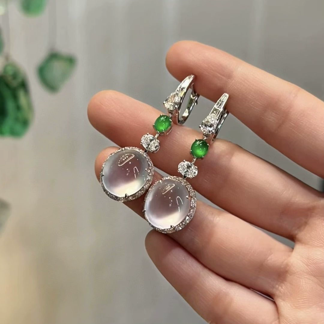 Серьги из натурального бирманского ледяного нефрита класса А, ювелирные изделия, женские модные серьги в корейском стиле, инкрустированные золотом и серебром, для подарков