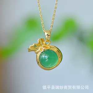 Натуральное ожерелье из нефритовой тыквы с сертификатом женский чонсам старинный аксессуар 925 серебряный позолоченный нефритовый кулон