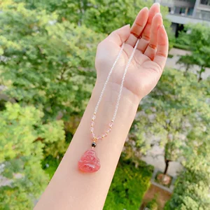 Новое колье в китайском стиле с подвеской в виде маленького Будды из чалcedония, инкрустированного серебром, и агатом, имитирующее нефрит, в женском стиле, с эффектом «большого живота» Будды.