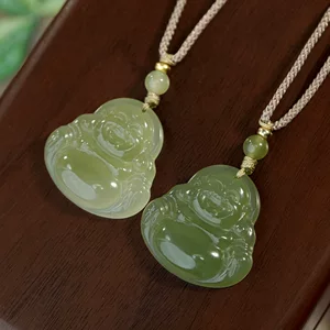 Натуральный нефрит Хэтиан, кулон Будда цвета прозрачной воды, Будда Майтрейя, Будда с большим животом, унисекс, Будда, обнимающийся с ним, Будда, смеющийся, нефритовый кулон