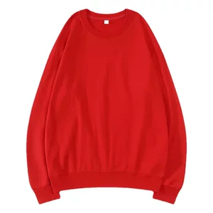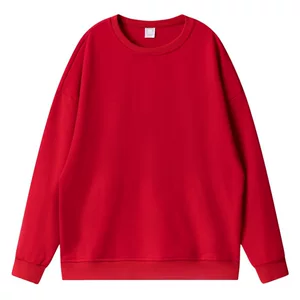 Индивидуальный красный свитшот для ежегодной встречи с нанесением логотипа, на флисовой подкладке, из плотного чистого хлопка, без капюшона, с круглым вырезом.