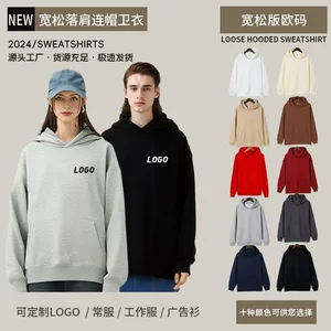 Толстовка с индивидуальным логотипом, весенне-осенняя тонкая рабочая одежда с капюшоном, мужская и женская, с длинными рукавами, свободная, с открытыми плечами, чистый цвет, чесаная