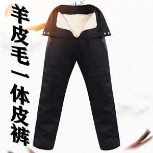 Брюки из овчины с высокой талией для среднего и пожилого возраста, устойчивые к холоду и теплые брюки из натуральной кожи, брюки из овчины с интегрированной подкладкой из овчины
