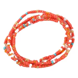 Цепочка на талию из рисовых бусин, европейская и американская трансграничная поясная цепочка, многослойные конфеты, модные красочные бусины ручной работы в богемном стиле