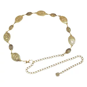 Ретро-ремень овальной формы в металлическом стиле с гравировкой и блестками, простая и универсальная поясная цепочка, подходящая к юбкам и джинсам.