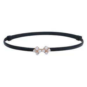 Женский пояс с жемчужной пряжкой, эластичный тонкий черный ремень, декоративное платье, пояс для девочек