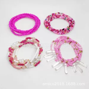 Цепочка на талию из рисовых бусин, европейская и американская трансграничная поясная цепочка, многослойные конфеты, модные красочные бусины ручной работы в богемном стиле