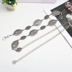 Ретро-ремень овальной формы в металлическом стиле с гравировкой и блестками, простая и универсальная поясная цепочка, подходящая к юбкам и джинсам.