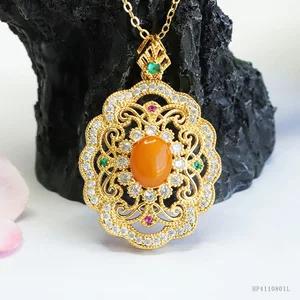 Натуральный старый медовый воск подвеска высокий груз яйцо в форме подвески подлинный сертификат S925 стерлингового серебра для женских одиночных игр ретро высокого уровня