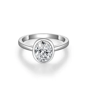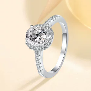 Кольцо из серебра 925 пробы с покрытием из платины 950 пробы, овальный муассанит огранки «голубиное яйцо», женские украшения, прямые поставки с завода, трансграничная прямая трансляция, легкая роскошь.
