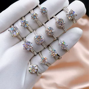 Трансграничная классическая T-семья с шестью когтями Mo Sang бриллиантовое кольцо GRA бриллиантовое кольцо s925 стерлингового серебра 1 карат светло-экстравагантного высокого чувства предложения
