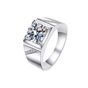 Шэньчжэньская обрабатывающая фабрика предлагает дизайнерское мужское кольцо из серебра 925 пробы с муассанитом, кольцо с бриллиантом из белого золота 18К и кольцо с бриллиантом из платины PT950.