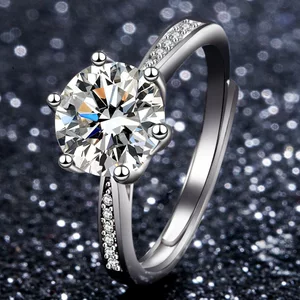 Кольцо из стерлингового серебра S925 с муассанитом, классическое кольцо с шестью крапанами для предложения руки и сердца, регулируемое, женское, прямая продажа от производителя, ювелирные изделия с камнями