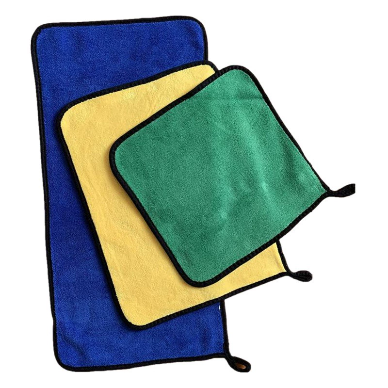Производители jinzhou оптом автомобильное полотенце двухстороннее двухцветное мягкое впитывающее полотенце высокой плотности кораллового флиса окантовка полотенце для мытья автомобиля