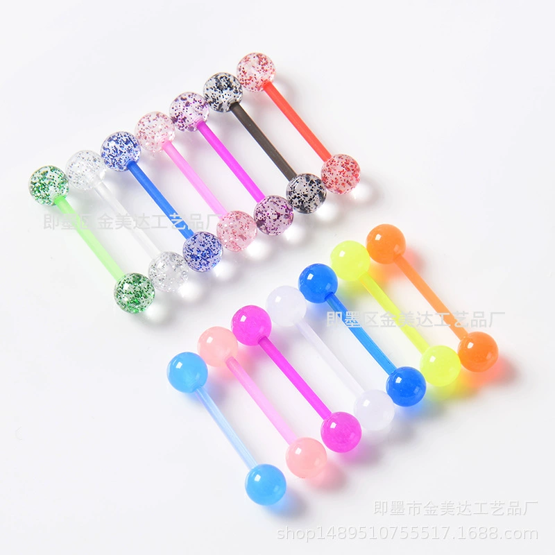 Внешняя торговля УФ язык гвоздь человеческого тела прокол европейский и американский грудной гвоздь акриловый язык гвоздь 16 Язык гвоздь костюм светящийся язык кольцо