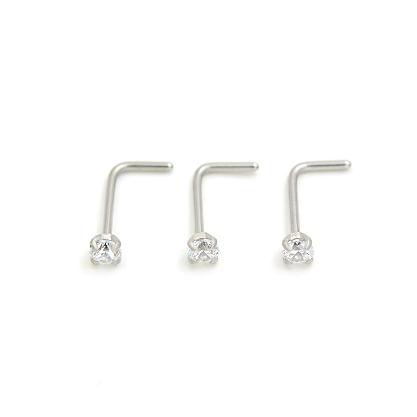 Прямые поставки с фабрики 60 из нержавеющей стали в штучной упаковке L-образный носовой гвоздь 1,5/2,0/2,5 Алмазный изогнутый стержень носовое кольцо проколотые украшения