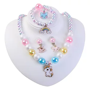 Амазонка взорвала розовый мультфильм любовь смола радуга пони подвеска для детей ювелирный набор женские бисерные украшения
