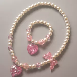 Детский набор ожерелья милый бант жемчужное ожерелье браслет серьги кольцо для девочек первый подарок для студентов