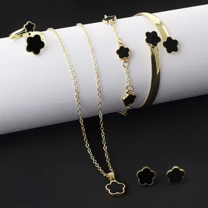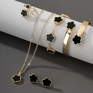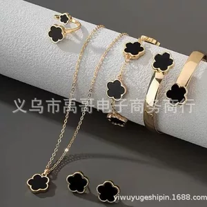 Трансграничный европейский и американский хит продаж, пятилепестковый цветок, 5 предметов, ожерелье, браслет, серьги, кольцо, европейский и американский элегантный комплект, готовый к продаже
