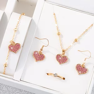 Трансграничный хит продаж, пятилепестковый цветок, сердце, капельное масло, женское ожерелье, браслет, кольцо, серьги, браслет, набор из пяти предметов аксессуаров