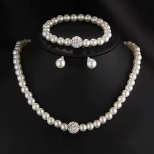 Европейский и американский простой стиль свадебный набор свадебных украшений темперамент модный жемчуг с бриллиантами серьги ожерелье браслет