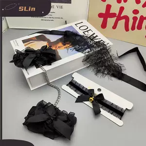 Сексуальный секс нижнее белье аксессуары кружева вуаль бант кружевные наручники завязывать ошейник choker женский секс sm