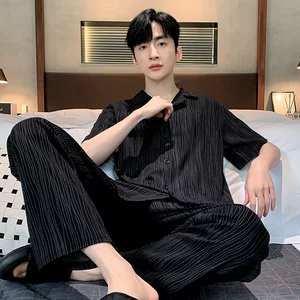 Мужской пижамный комплект, мужской стиль, новая модель 2026 года (весна, осень, зима), летний кардиган из ледяного шелка с длинными рукавами, тонкая домашняя одежда.