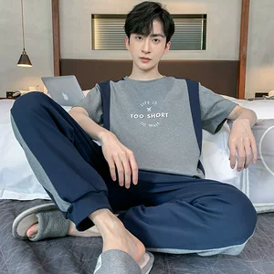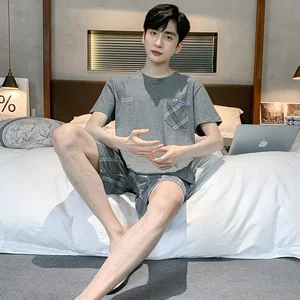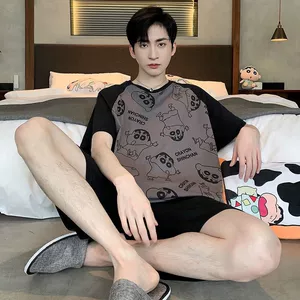Молодежная Мужская пижама, летняя тонкая Свободная Повседневная Домашняя одежда с коротким рукавом для костюма, можно носить на улице