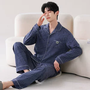 Хлопчатобумажная пижама мужская осень-зима кардиган с длинными рукавами