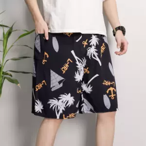 Хлопковые шелковые Пижамные брюки, мужские летние тонкие свободные шорты больших размеров, Повседневные Дышащие цветочные брюки, верхняя одежда, пляжные брюки с пятью точками