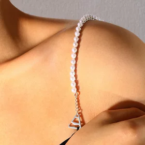 Европейская и американская трансграничная ювелирная мода простой имитация жемчуга длинная обратная цепочка цепи тела невеста дикое ожерелье женская цепочка груди