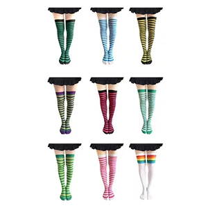 Фабрика в наличии Хэллоуин Рождество Полосатые праздничные чулки Аксессуары для костюмов для вечеринок Полосатые чулки выше колена