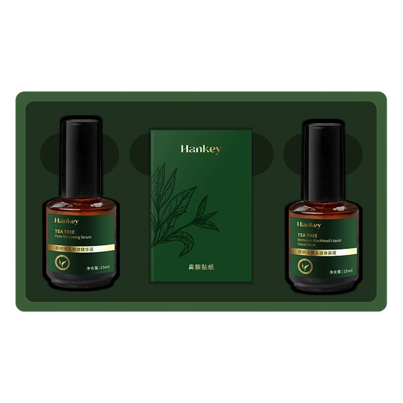 Hanji Tea Tree Набор эссенций для удаления черных точек Глубоко очищающая маска для носа Экспортирующая жидкость для черных точек Эссенция для сужения пор