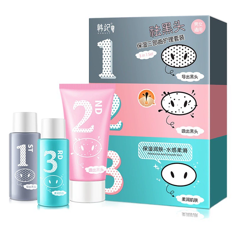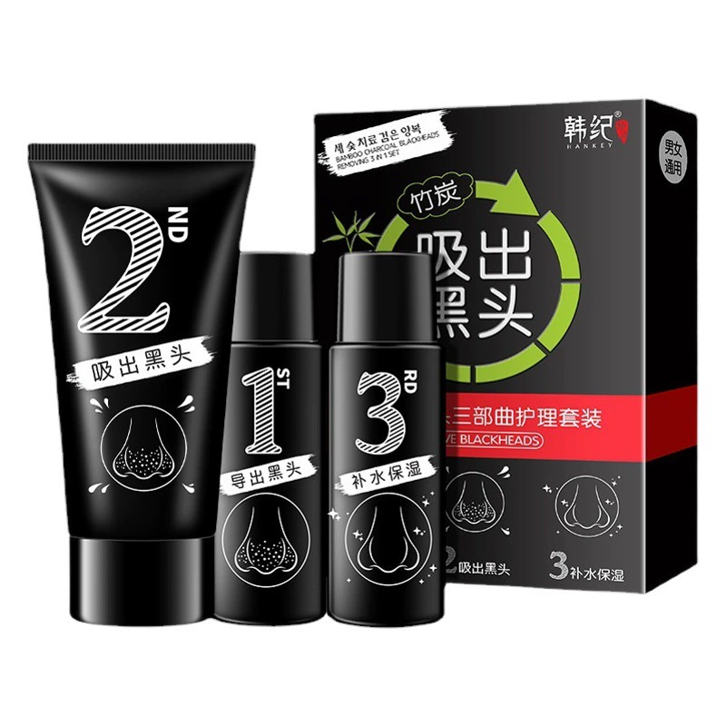 Han Ji Bamboo Charcoal Blackhead Removal Trilogy Увлажняющий очищающий поры Сужающий набор средств по уходу за кожей Набор жидких средств для экспорта черных точек