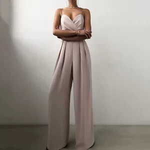Европейская и американская трансграничная женская одежда 2024 новый летний модный сплошной цвет тонкая подтяжка комбинезон женский производитель оптом
