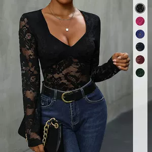 Осенний новый кружевной прозрачный комбинезон в европейском и американском стиле с глубоким V-образным вырезом и открытой спиной, сексуальный комбинезон на подтяжках 60096