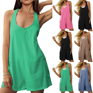 Трансграничный женский комбинезон Amazon, персонализированный уличный однотонный комбинезон без рукавов, 2025 г., европейский и американский весенне-летний новый стиль