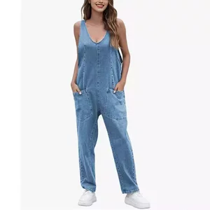 Популярный комбинезон Amazon 2023 Летние европейские и американские женские комбинезоны с большими карманами, Свободный комбинезон, Женский трансграничный