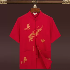 Костюм Тан из ледяного шелка для мужчин среднего и пожилого возраста, костюм-рубашка с короткими рукавами, повседневное летнее платье для дедушки, европейский стиль, большие размеры, папа, династия Хань