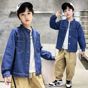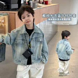 Детская джинсовая куртка 2026: новая модель для мальчиков, корейский повседневный стиль, осенняя верхняя одежда, тонкая осенняя куртка для малышей
