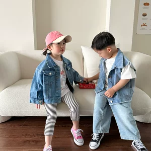 Корейская версия s покупает джинсовую куртку брюки весна новая свободная версия для детей, мальчиков и девочек дикий отдых