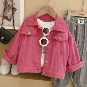 Весенне-осенняя Повседневная куртка для девочек, детская модная Корейская одежда, свободный Универсальный джинсовый топ для девочек, большие дети, детская одежда