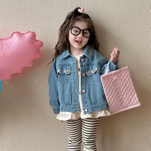 Джинсовая куртка для девочек, весна-осень 2026, новая модель, детская одежда в корейском стиле, модные топы для маленьких девочек, весенняя одежда для малышей