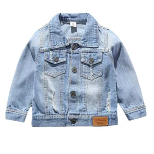 Джинсовая куртка для мальчиков, размер 26, новинка весна-осень для малышей, детская рваная куртка в корейском стиле для девочек, стильная джинсовая одежда.