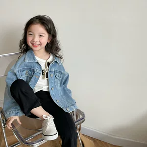 Джинсовая куртка для девочек 2024 весна и осень новая маленькая девочка корейская стирая джинсовая куртка детская одежда 99003