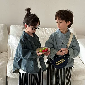 Корейская детская одежда для детей весной и осенью с длинными рукавами джинсовые куртки для мальчиков и девочек