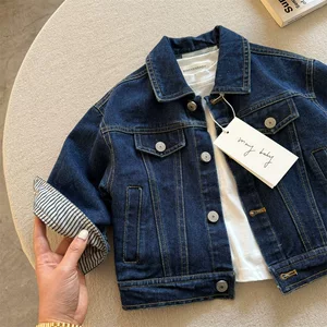 Aimo Bebe детский порт прилив красивый песок, вымытые ретро джинсовые куртки для мальчиков и девочек повседневные короткие воротники