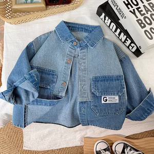 Джинсовая куртка для мальчиков, детская весенняя рубашка, весенне-осенняя стильная рубашка для мальчиков, весенний корейский топ с длинными рукавами для малышей