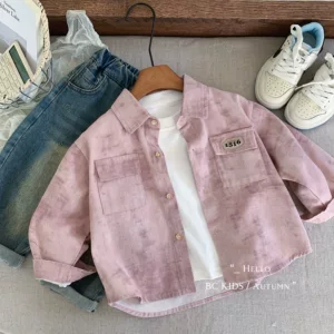Детская джинсовая рубашка для мальчиков, осень 2025, новая модель, весенне-осенняя, в корейском стиле, модная рубашка для малышей